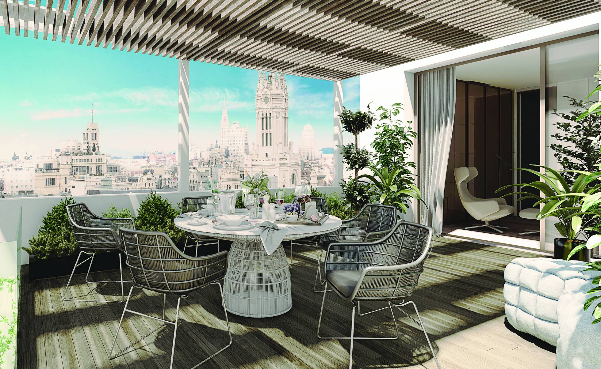 Dans le quartier de Los Jerónimos, à côté du Parque del Retiro, est à vendre l’attique le plus cher d’Espagne. Avec une vue magnifique de la ville à 360° et un espace de près de 750 m² réparti sur trois étages, ce joyau est l’un des projets les plus luxueux du centre de Madrid.