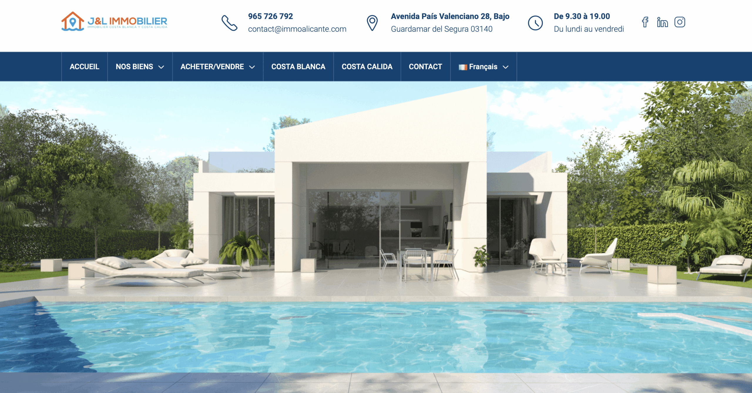 Notre Agence immobilière française en Espagne, vous accompagne de la faisabilité de votre projet d’investir en Espagne, à la signature devant notaire, nous nous chargeons de tout. Même à distance, inutile de vous déplacer. Avec J&L IMMOBILIER, vous bénéficierez d’un accompagnement juridique et administratif complet. Vous profiterez ainsi d’un interlocuteur de confiance sur place.