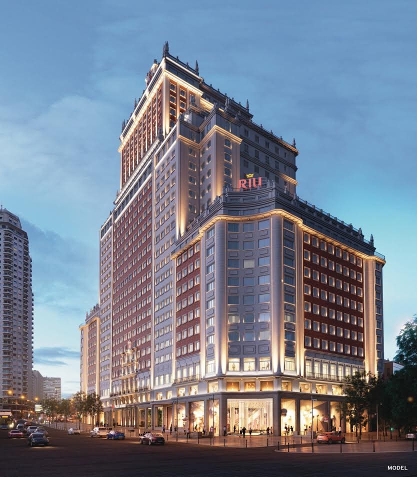 L’Édifice d’Espagne de Madrid est désormais officiellement entre les mains de la chaîne hôtelière RIU et du Groupe Baraka, suite à la signature de l’accord de cession. Le coût total de l’opération s’élèverait à 272 millions d’euros. Les deux entreprises possèdent donc à présent la totalité du célèbre établissement dans lequel ils prévoient d’établir un hôtel de luxe.