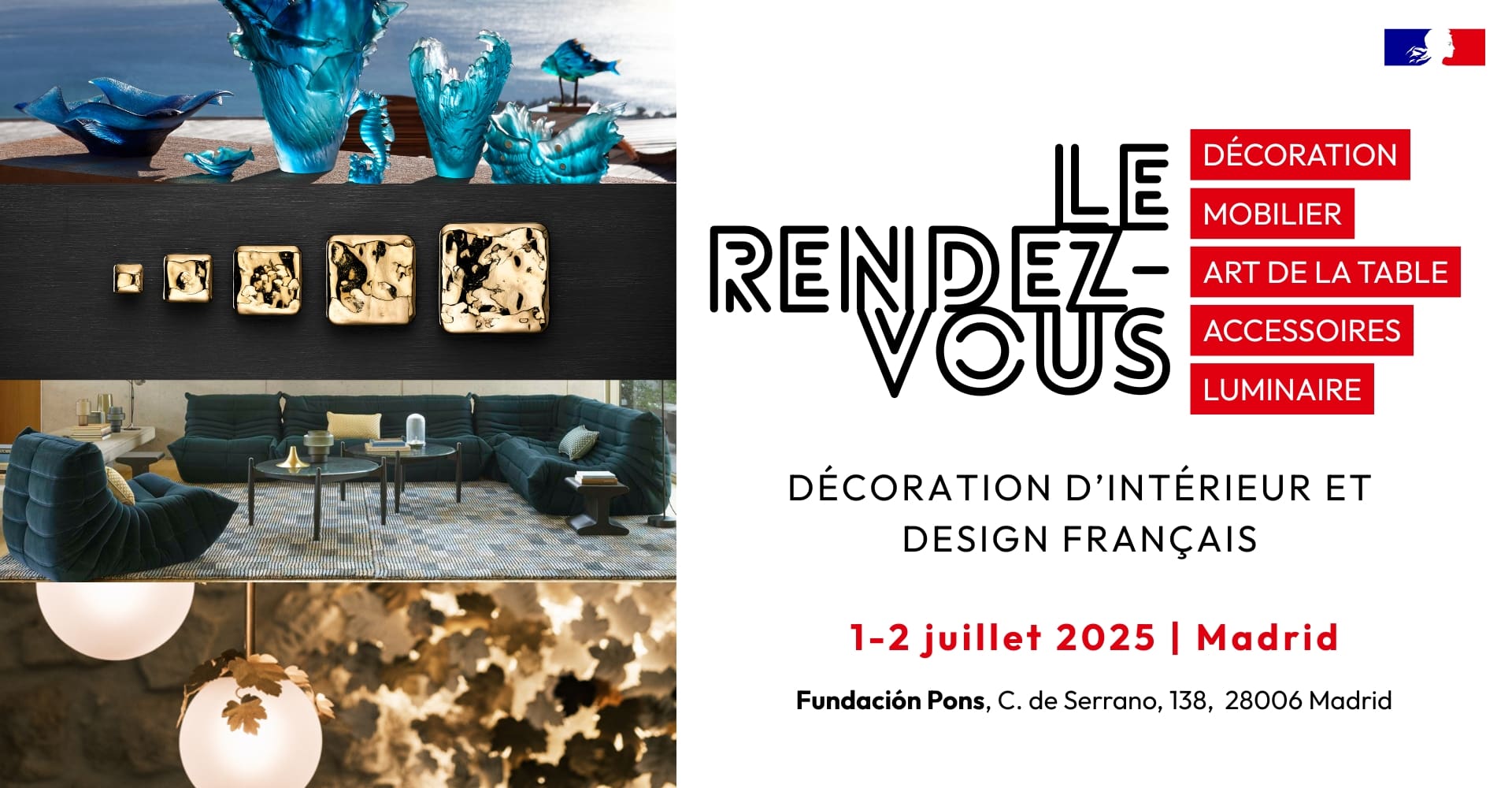 Les 1er et 2 juillet, la Fondation Pons à Madrid accueillera un événement exclusif dédié au mobilier, au design et à la décoration d’intérieur Made in France. 16 marques françaises, sélectionnées pour la qualité de leur savoir-faire, exposeront leurs créations à travers une scénographie immersive. Organisé par Business France, Le Rendez-Vous s’adressera exclusivement aux professionnels du secteur en Espagne : architectes d’intérieur, chaînes hôtelières, enseignes de décoration, distributeurs et promoteurs immobiliers.