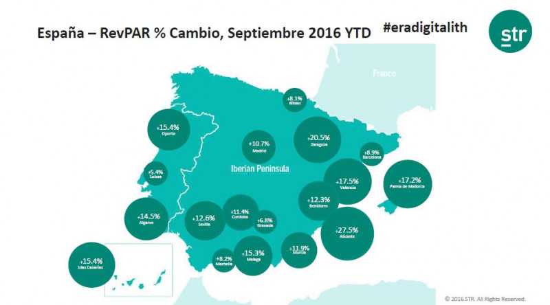 Le « RevPar » de Madrid n’est pas en reste et le taux d’occupation a dépassé les 70%. La plus forte hausse du RevPar est constatée à Alicante avec +27%. Il faut dire que les autorités locales ont su s’ouvrir aux compagnies aériennes étrangères qui y déferlent depuis 2 ans.
