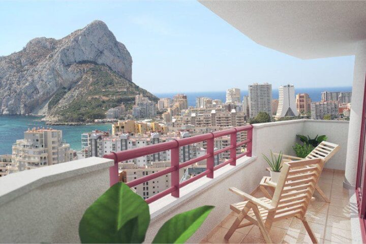 Appartement de 3 chambres situé près de la plage de Levante de Calpe. Avec 121 mètres carrés de superficie totale, il se compose de 2 salles de bains et d’une cuisine indépendante.