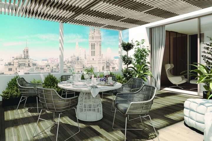 Dans le quartier de Los Jerónimos, à côté du Parque del Retiro, est à vendre l’attique le plus cher d’Espagne. Avec une vue magnifique de la ville à 360° et un espace