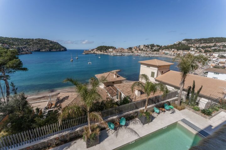 Découvrez cette magnifique villa moderne située dans un endroit absolument paradisiaque et paisible à Port de Sóller, avec des vues panoramiques spectaculaires sur la